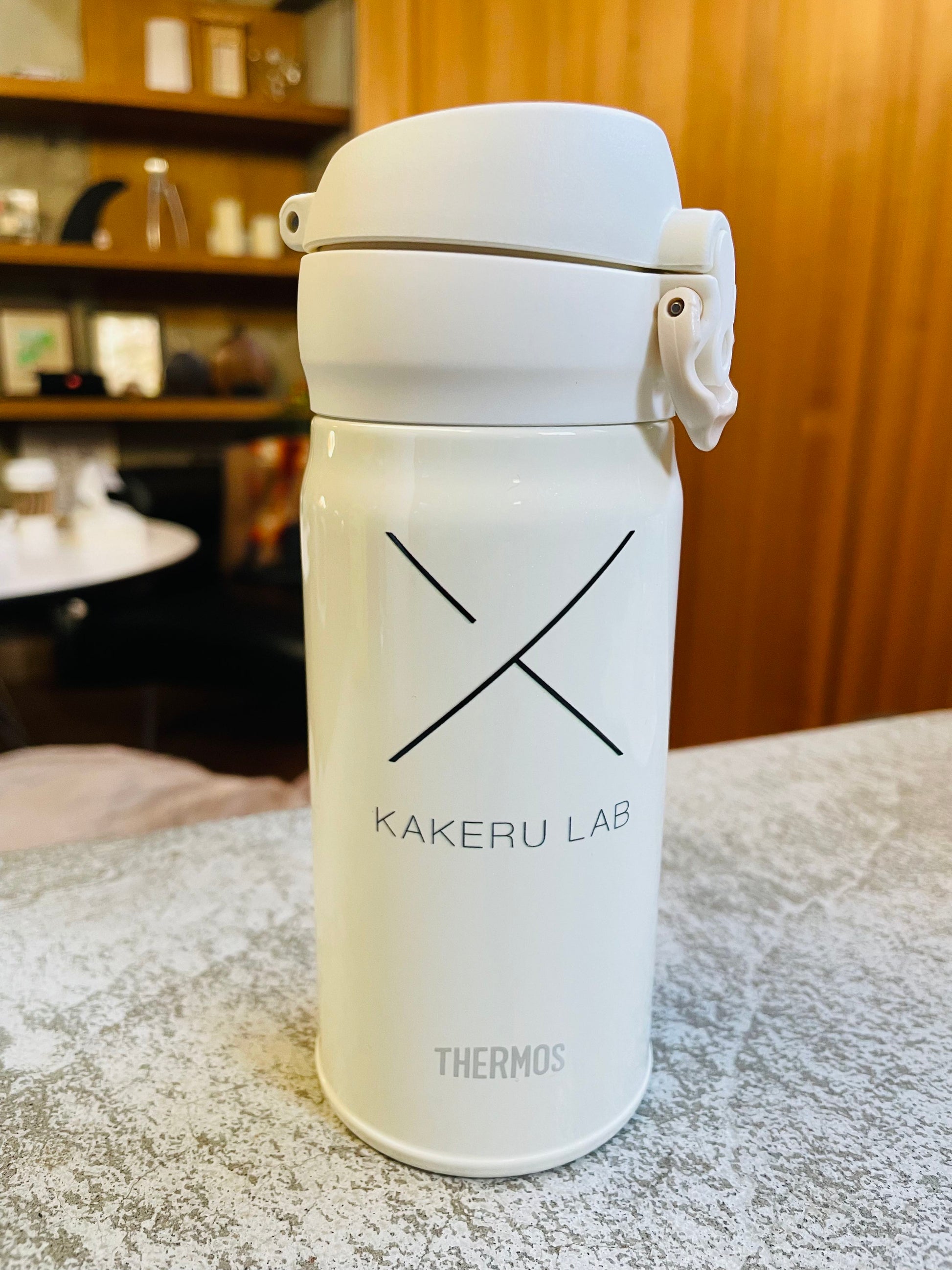 カケルラボのロゴをあしらったオリジナルコーヒーボトル。THERMOS 真空断熱ケータイマグ350ml
